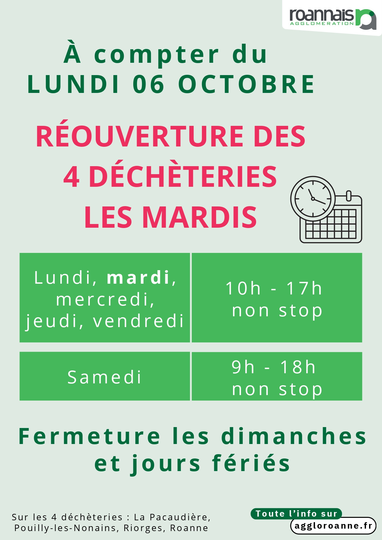 HORAIRES DECHETERIES -OUVERTURE LES MARDIS