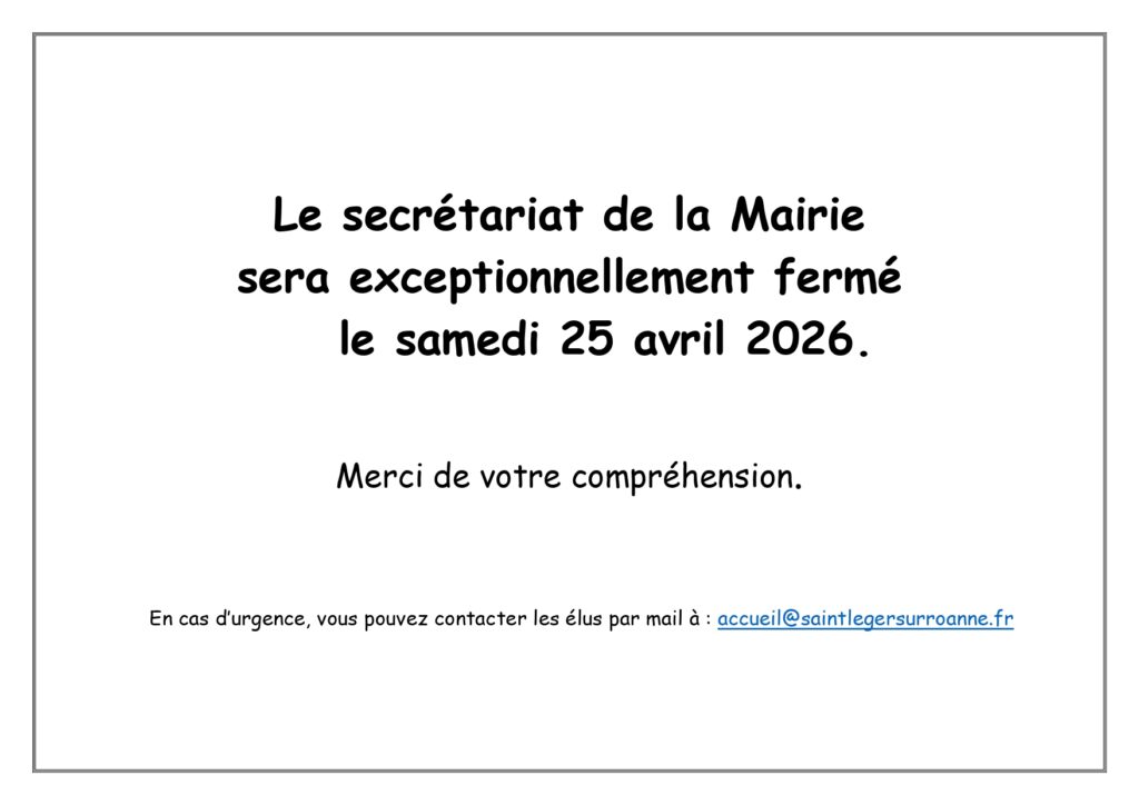 FERMETURE DU SECRÉTARIAT DE LA MAIRIE